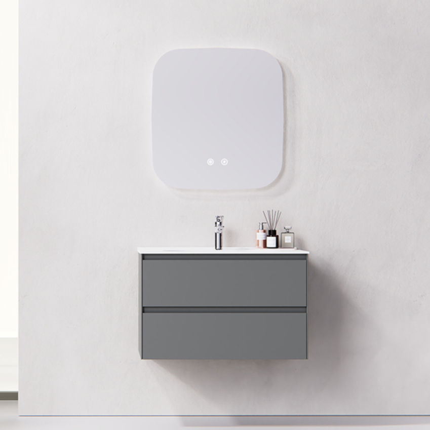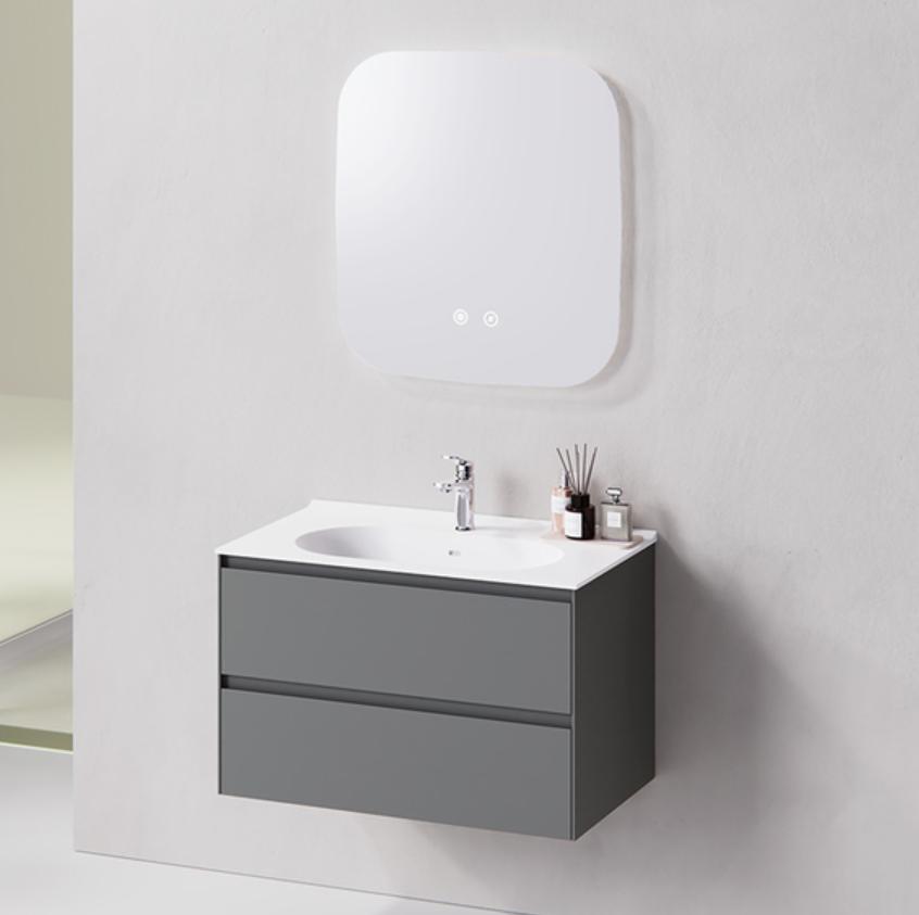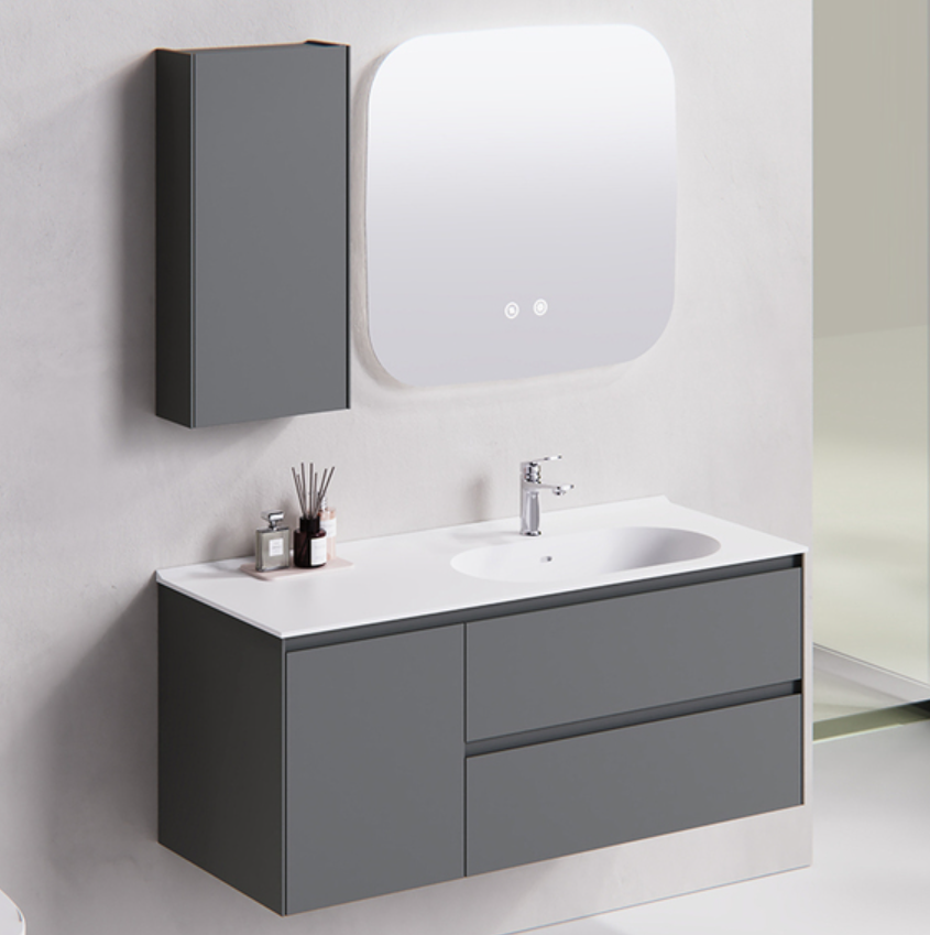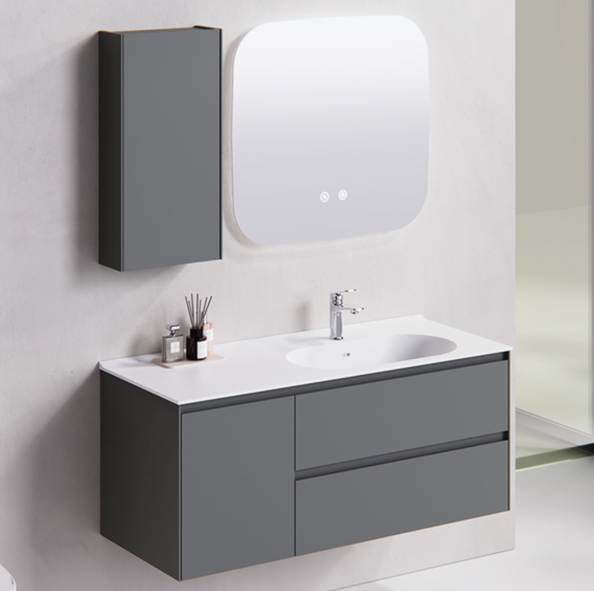 Main Cabinet: 890 × 495 × 530 mm Smart Mirror: 900 × 30 × 700 mm Basin: 900 × 500 × 170 mm Color: Main cabinet/ Grey; Countertop/ White